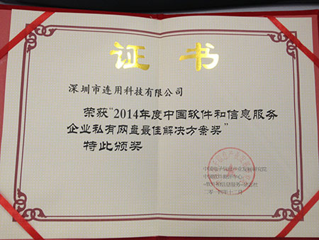 2014年12月19日,以“互聯網時代的軟件創新”為主題的“2014中國軟件大會” 在北京新世紀日航酒店順利舉辦、圓滿成功。在本次大會上,連用科技榮獲了由中國電子信息產業發展研究院、中國軟件測評中心及《軟件和信息服務》雜志社聯合頒發的“2014年度中國軟件和信息服務企業私有網盤最佳解決方案獎”。連用科技作為大數據領域的先行者,一直致力于大數據管理和協同應用領域產品的深入研究,憑借多年來在金融、電力、政府、公檢法、醫療、教育等各行業積累的廣泛客戶和實戰經驗,對各行業在大數據、云計算、移動互聯的大時代背景下面臨的海量非結構化數據存儲和管理方面的迫切問題,連用科技有著更快速的認知和全方位的把控,能夠為企業提供個性化、定制化、創新型的解決方案和軟件平臺服務,使企業能夠在更大范圍、更深層次上節省成本、提高效率,促進資本流通和資源的優化。